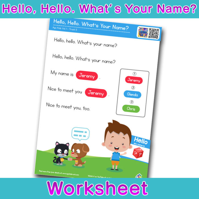 Hello Hello What S Your Name Free Esl Worksheet Song Lyrics Card Bingobongo